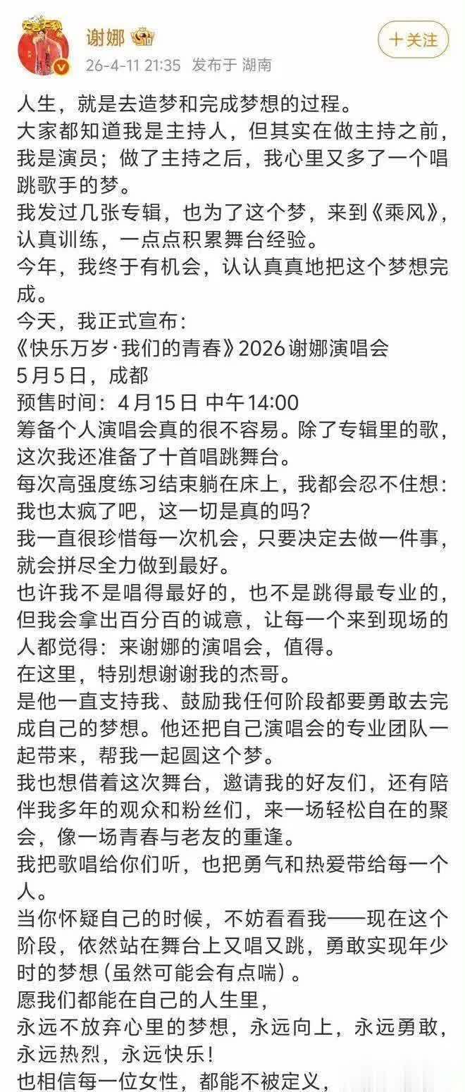 44岁的谢娜,身为三个孩子的母亲,在主持事业巅峰期选择挑战唱跳舞台,这本就是一场关于勇气与梦想的公开课。无论最终演出效果怎样,这场演唱会已经创造了多个话题:秒罄的售票速度、两极分化的舆论反响、以及关于"跨界"与"专业"的行业讨论。